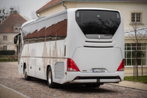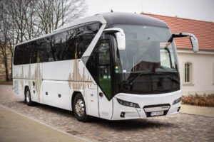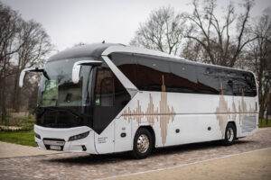 Zapraszam do przyjrzenia się z bliska autokarowi, którego wynajem oferuję. To nowoczesny i luksusowy pojazd marki Neoplan Tourliner wykończony w ekskluzywnym standardzie na specjalne zamówienie. Autokar ma także ciekawą historię, którą bliżej można poznać odwiedzając stronę o firmie.